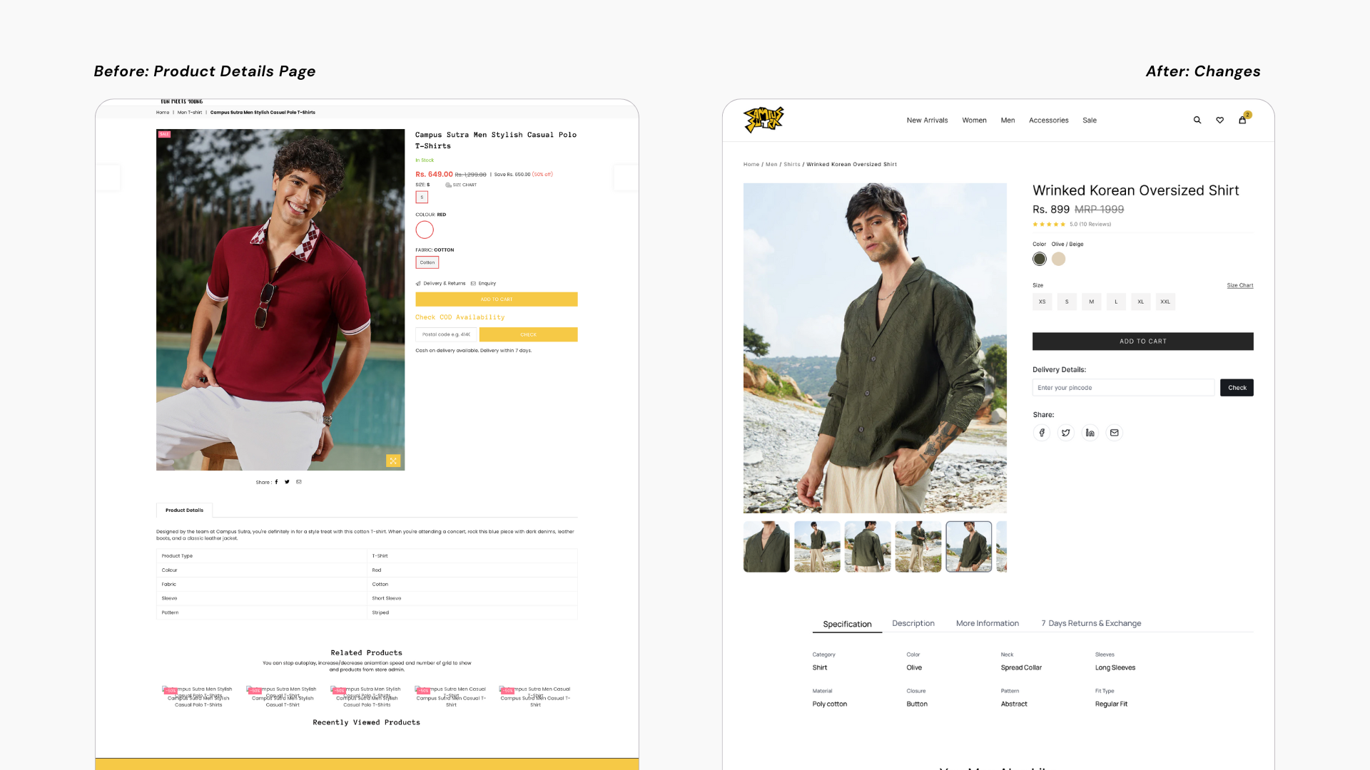I began by redesigning with Product Details page, which featured vertically scrolling images in a more editorial-style layout. While the internal team appreciated the visual appeal, the feedback highlighted a challenge: it was difficult to compare multiple angles of a product simultaneously. In response, I explored designs using a tile-based preview approach.